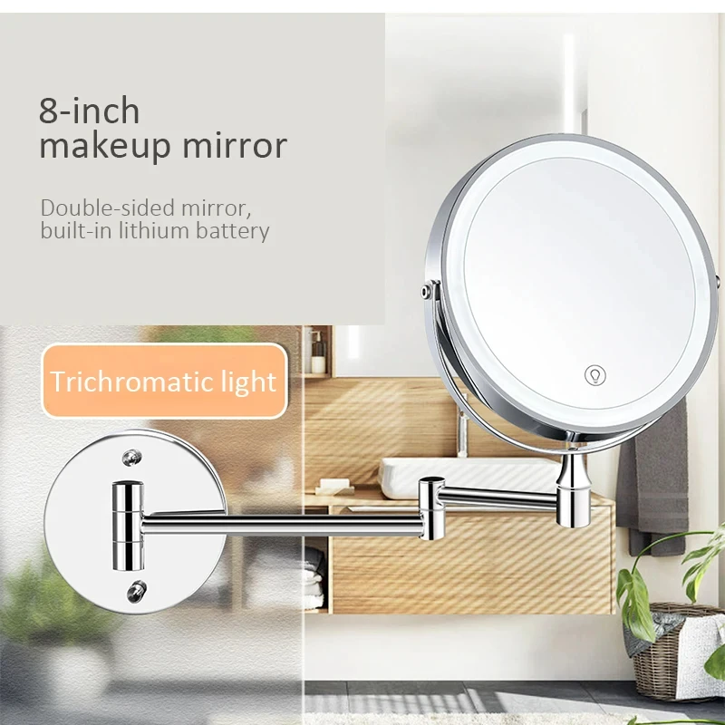 Espejo LED de doble cara para, espejo de baño plegable montado en la pared.